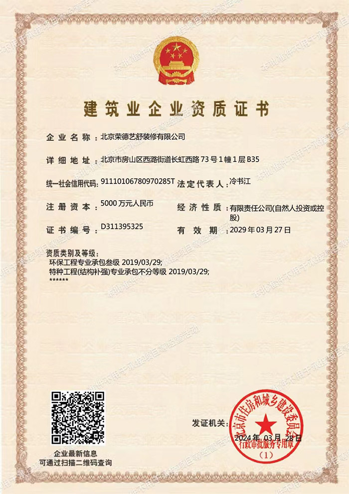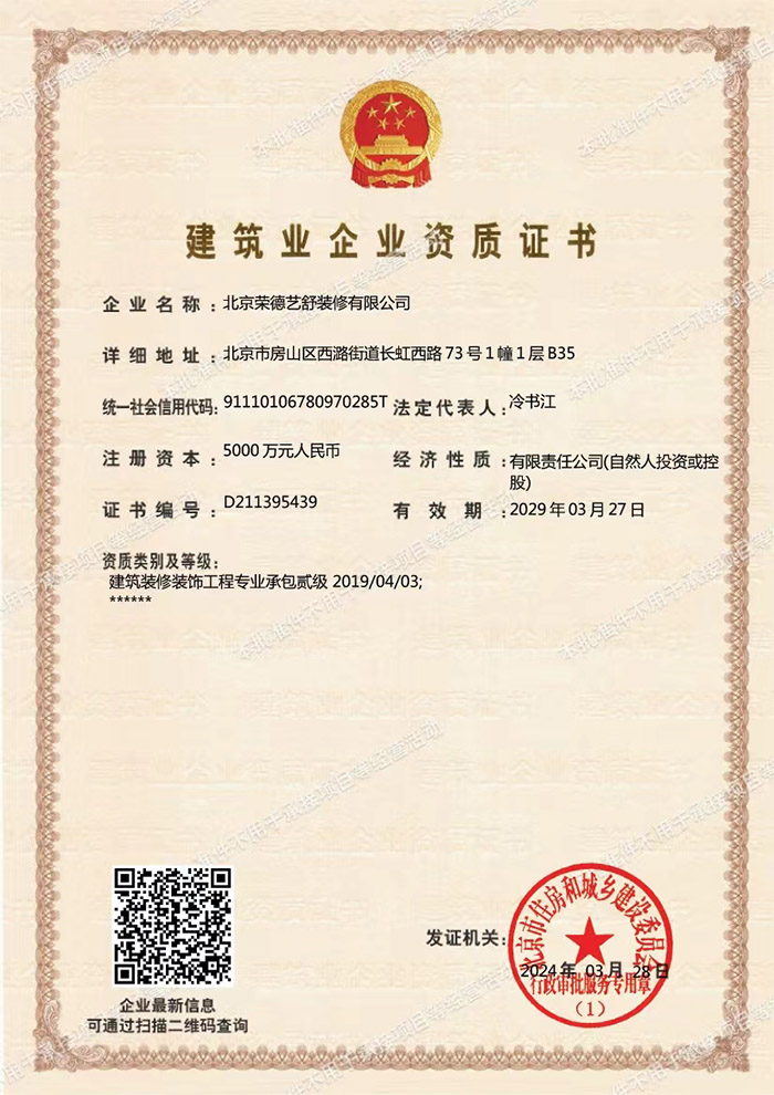 北京荣德艺舒装修有限公司自创立以来,一直以优秀、独特的高品位设计以及全方位的设计、施工服务作为企业的特色品牌。逐步赢得了社会各界的广泛赞誉,并获得了不少的奖项。荣德艺舒始终把客户利益放在重要位。公司拥有室内设计、工程监理、专业技术管理人员和经验丰富的施工队伍,以满足不同客户的装修需求。并为广大客户提供设计、施工、监理、建材的全方位服务,承诺做到“四免费”:免费现场量房、免费初步设计、免费设计施工方案、免费核算工程造价。荣德艺舒致力于品牌建设与管理,努力提升核心竞争力,始终坚持以诚信的经营,优质的服务为宗旨。在施工管理方面,公司始终坚持:安全、质量、环保、文明“四要素”原则,提倡“材料是骨架,设计是灵魂,质量是生命”的装修装饰理念,全心全意地为客户服务。荣德艺舒着力打造其防水装修行业特色,在防水工程方面精益求精,总结了一整套传统与现代工艺相结合的堵漏防水的方法,能针对不同情况正确选材合理施工,达到彻底止水之目的;更擅长疑难渗漏的修补,防水堵漏治标又治本,免除旧屋面不断翻新之苦及漏水之愁!荣德艺舒装修先后为数百家中、外客户服务,承接的工程有:中科院物理研究所的实验室装修、室外防水、办公室装修;中科院大气研究所的实验室及办公装修;中国纺织科学院洁净室建设和装修工程;北京工业大学环境与能源工程学院会议室装修、科研楼装修工程;小橡树幼儿园的室内及校内装修工程;海驰泰科家禽孵化科技(北京)有限公司厂房整体装修工程及厂房扩建工程装修等等。凭着自身独立的设计理念和过硬的施工体系,得到了客户的认可与支持。