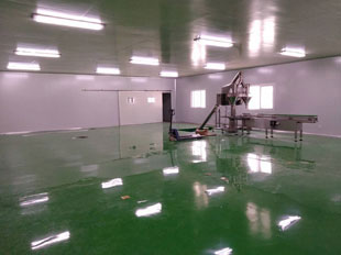 工程项目:1200平米的净化厂房整体装修。净化厂房的地面用商混C30标号的商业混凝土地面垫平,然后再做环氧自流坪地面。墙体和顶面用净化板建设,墙体拐弯用铝合金圆柱做墙体的衔接。墙角和顶角用铝合金弧型胡角衔接,起防尘作用。