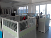 我们公司承接了天津鑫龙华亭科技贸易公司办公室装修工程,工程项目包括:做钢结构二层焊接工程,商混水泥垫平工程,地面底胶。办公室做钢化玻璃隔断墙,钢化玻璃地弹簧无框门,办公区吊矿棉板顶,照明电路铺设,布置电路,设备用电布置。